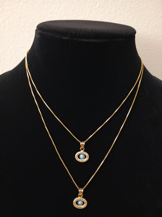 10K Gold Box Chain 18" and 14k Eye Pendant