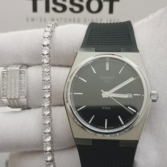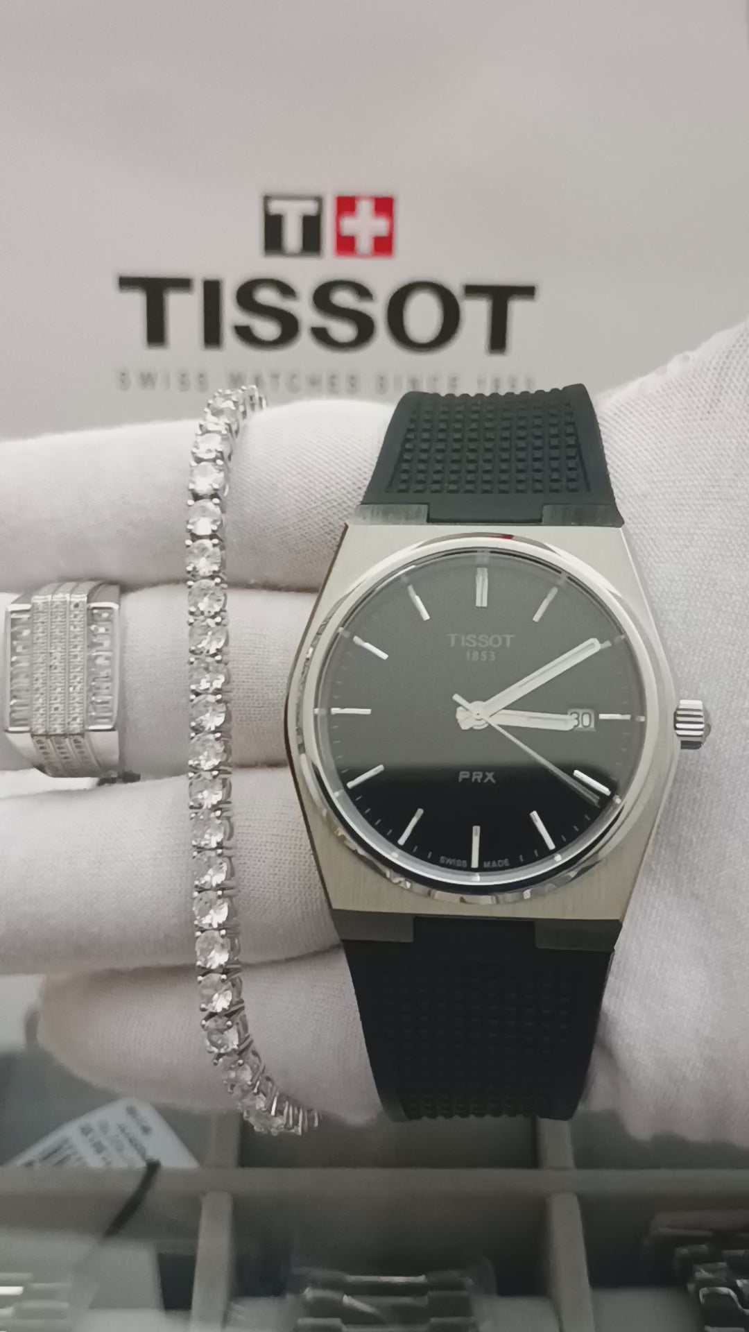 The Tissot PRX Men's Watch features a 40 mm 316L stainless steel case paired with a sleek black dial, powered by precise Swiss Quartz movement. Its scratch-resistant sapphire crystal ensures enduring clarity, while the interchangeable quick-release bracelet offers versatile styling options. Designed for durability, this timepiece is water-resistant up to 10 bar (100 m/330 ft), making it suitable for everyday wear and light aquatic activities. Backed by a 2-year warranty, it combines refined craftsmanship with reliable performance. SKU: 137.410.17.051.00